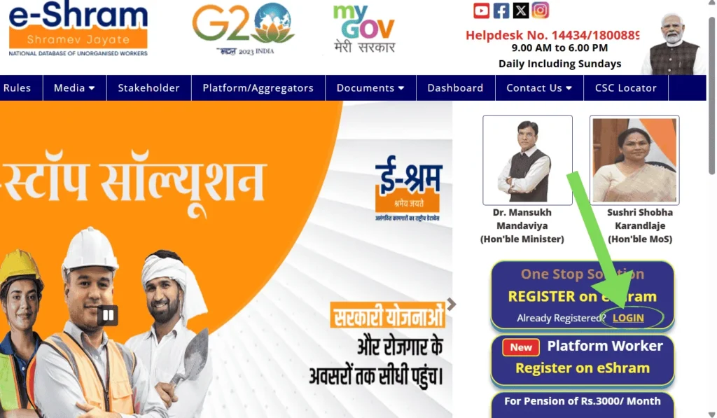 - सबसे पहले Shram Portal की आधिकारिक वेबसाइट eshram.gov.in पर जाए।